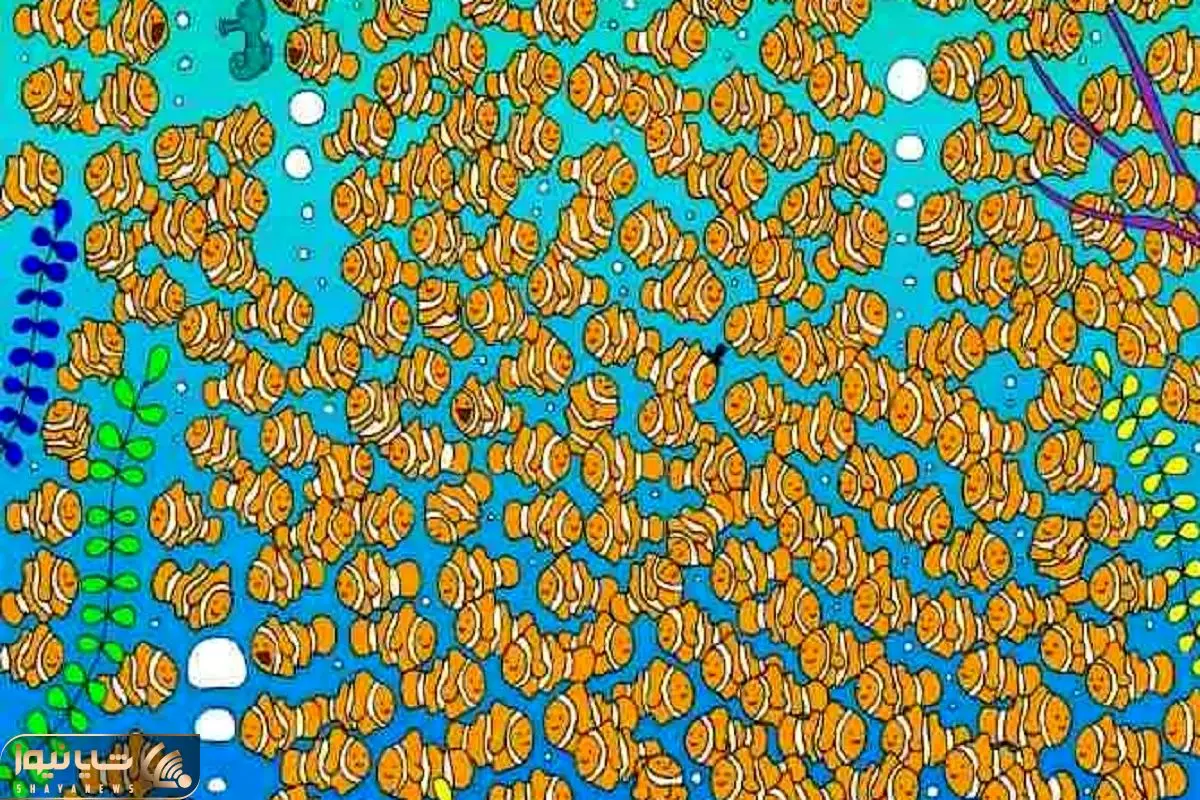 آیا میتوانید ماهی قرمز پنهان شده در میان دلقک ماهیها را در عرض ۵ ثانیه پیدا کنید؟