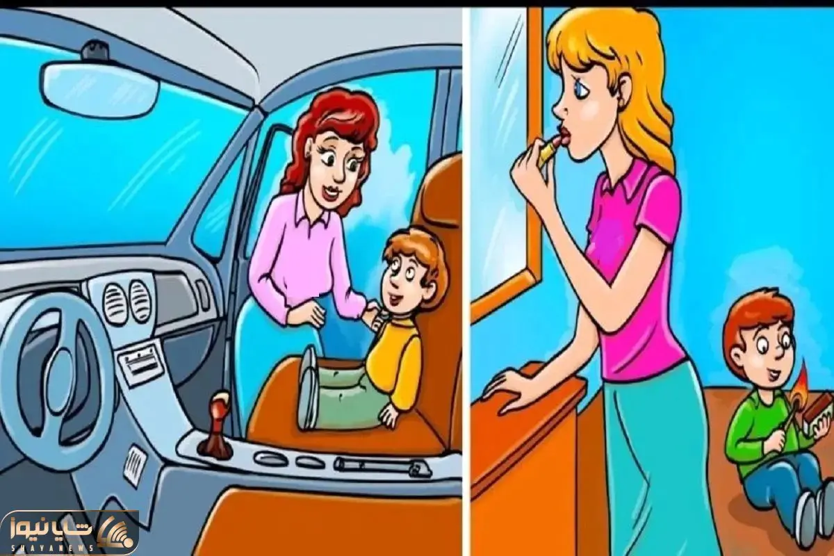 جواب: اونی که تو آینه آرایش میکنه حواسش به بچه نیست ولی اون یکی داره با آگاهی بچه رو روی صندلی جلوی ماشین مینشونه که خب خطرناکه پس بی مسئولیته.