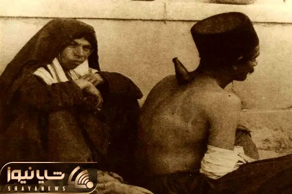 یک عکس یک روایت؛ مردی از قاجار در میان کوچه برای درمان با شاخ گاو حجامت میشود