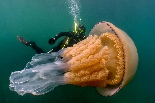 این عروس دریایی برای نخستین بار در سال 2019 توسط یک زیست شناس ثبت شد و مورد توجه غواصان و شبکه های اجتماعی قرار گرفت. این موجود دریایی با ساختار خارق العاده و منحصر به فرد خود در سواحل انگلیس یافت می شود و تنها اندازه دهانه آن، به اندازه 40.64 سانتی متر است.