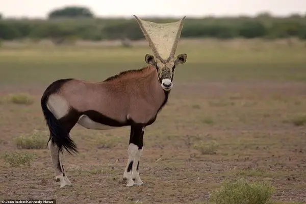 گردشگران در منطقه حفاظتشده کالاهاری در بتسوانا ابتدا تصور کردند که کیسه پلاستیکی در شاخهای گوزن گیر کرده و این تصور آنها را نگران کرد.