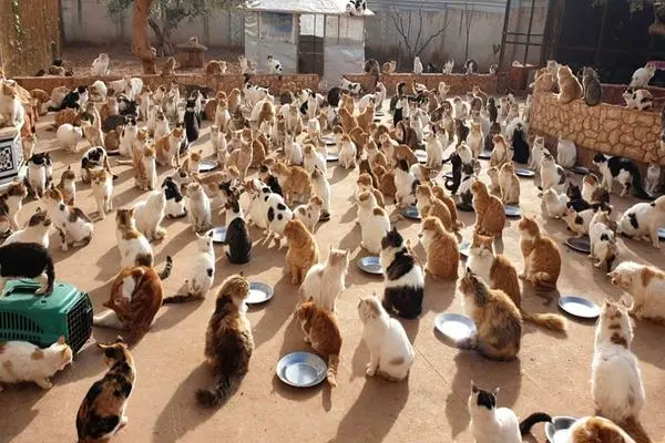 پناهگاهی که در سوریه ساخته اکنون هزاران گربه بی پناه را در خود جای داده و از آنها مراقب می کند.